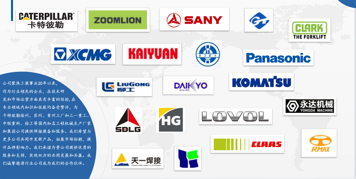 公司成立于2000年,注冊資本1000余萬元,生產面積約10000平?,F(xiàn)有員工50余人,專業(yè)工裝設計師15人。公司設運營管理部、制造部、技術質量部職能管理部門,是集ISO質量環(huán)境管理體系、安全標準化企業(yè)為一體的高新技術創(chuàng)新企業(yè)。 公司主要從事工程機械制造、焊接工裝、焊接變位機、智能加工中心夾具、工業(yè)機器人為核心的非標工裝、變位機、智能拼點、生產線集成配套、裝配線、智能機器人工作站集成服務、非標專機設計制造,為客戶提供一站式整體解決方案和交鑰匙項目。公司聚焦工裝事業(yè)20年以來來,專業(yè)性強,為卡特彼勒徐州、蘇州、青州工廠和三一重工、中聯(lián)重科、徐工等國內知名工程機械生產廠家和集團公司提供焊接裝備和服務,目前已形成年產值3000余萬元的生產能力。